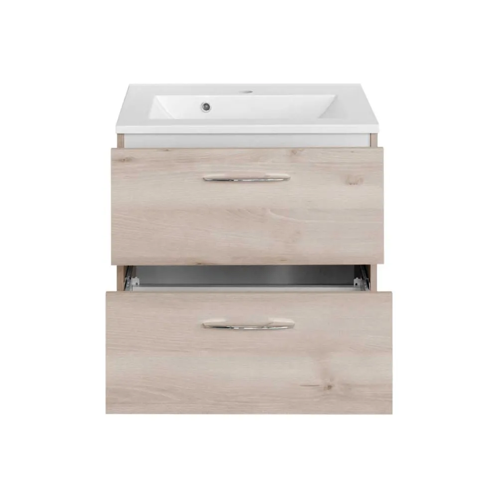 Wer im Badezimmer Wert auf Stauraum und Ordnung legt, findet in „Mabeca“ einen zuverlässigen Begleiter. Mit seinen kompakten Maßen von 60 cm Breite, 54 cm Höhe und 48 cm Tiefe bietet er auf kleinem Raum erstaunlich viel Platz. Zwei großzügige Schubladen mit langlebigem Metallauszug laufen sanft und leise – ideal für die tägliche Nutzung. Die Innenmaße von ca. 50,5 x 18 x 38 cm pro Schubkasten schaffen ausreichend Platz für Kosmetik, Pflegeprodukte und Badutensilien. Besonders clever: Der integrierte Siphonausschnitt in der oberen Schublade ermöglicht trotz Ablaufführung ein Höchstmaß an Stauraumnutzung. Die offene Rückseite sorgt zusätzlich für Flexibilität bei der Montage und vereinfacht den Anschluss der Wasserleitungen erheblich.