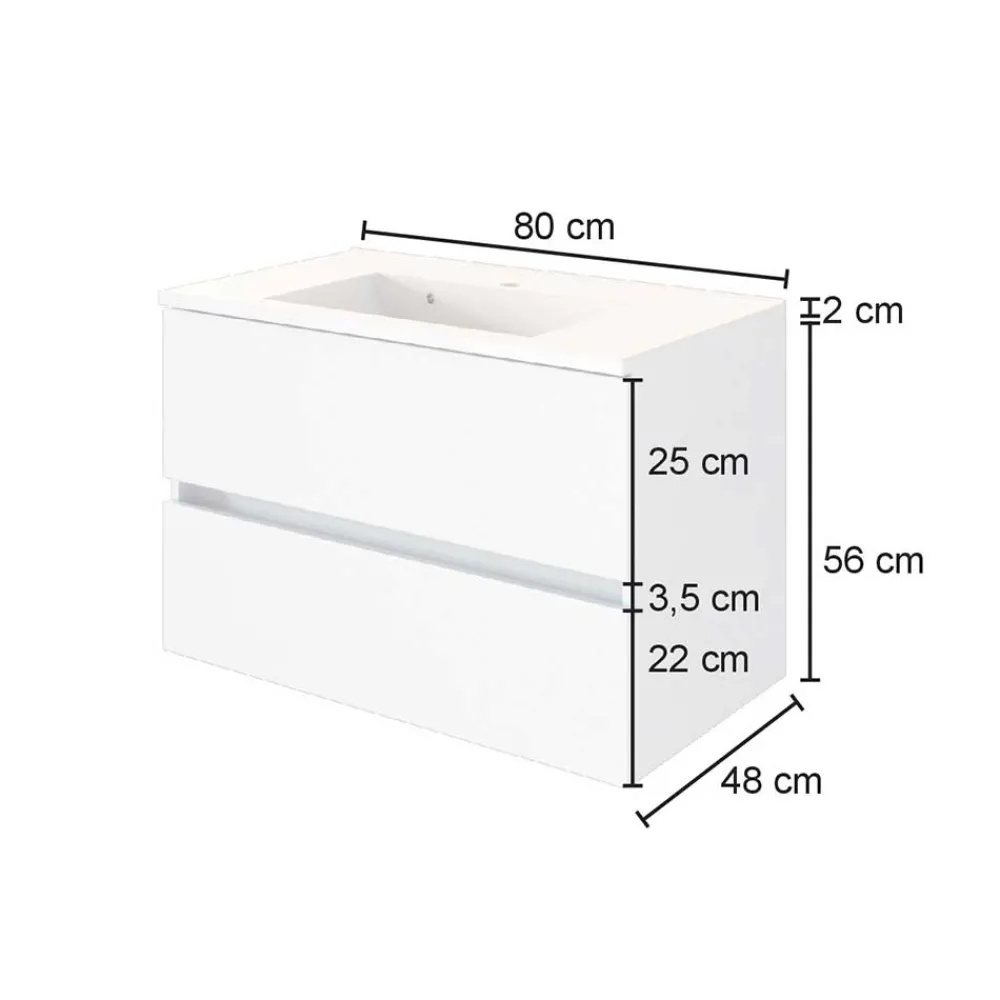 Mit einer Höhe von 56 cm, einer Tiefe von 47 cm und wählbarer Breite (60, 80, oder 100 cm) passt dieser Waschtisch in verschiedenste Raumgrößen. Die Maßvielfalt ermöglicht es, den Waschtisch perfekt in Ihr Badezimmer zu integrieren.