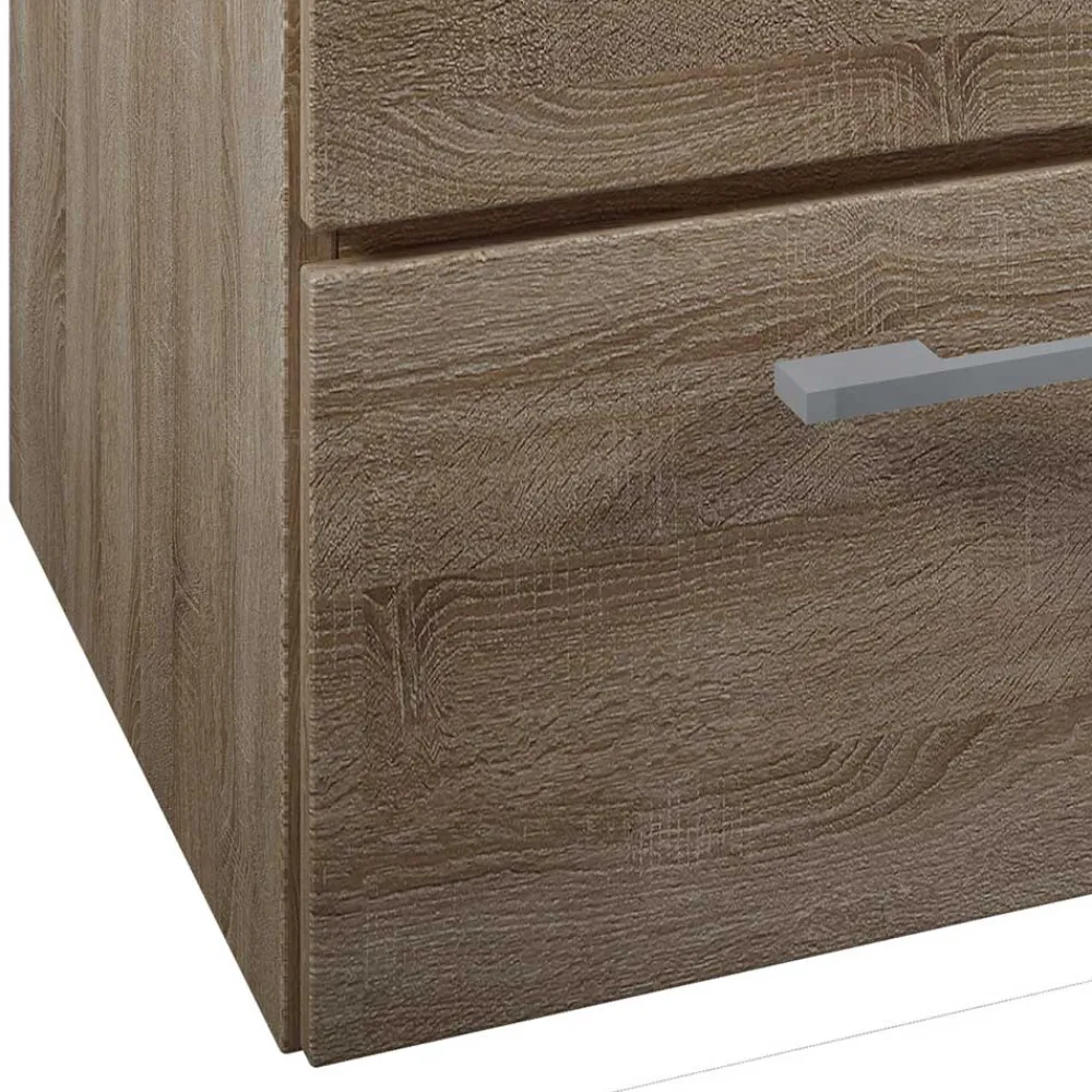 Modernes Wohnen bedeutet, Funktionalität und Ästhetik perfekt miteinander zu verbinden. Die Waschtischkonsole „Caleena“ vereint genau das: ein klares, zeitloses Design mit warmer Natürlichkeit und hochwertiger Verarbeitung. Mit ihrem modernen Look in edler Eiche Sonoma bringt sie eine harmonische Balance aus Eleganz und Gemütlichkeit in jedes Badezimmer. Die sanfte Holzoptik sorgt für ein einladendes Ambiente, während die klaren Linien und die schlichte Formensprache modernen Purismus verkörpern.