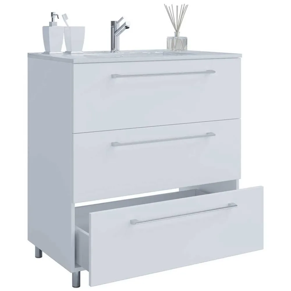 - Weiße Keramik Waschbecken mit seitlichen Ablagen