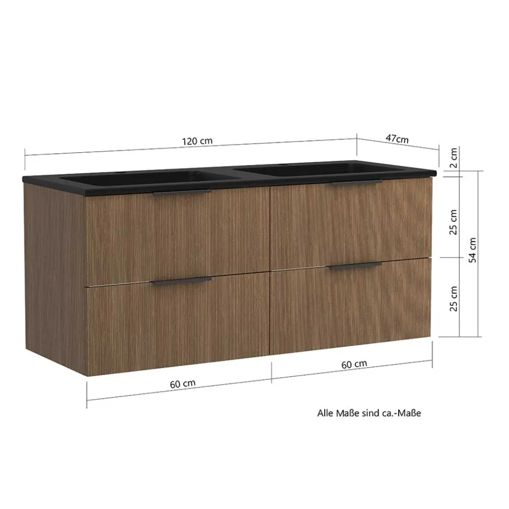 Wer Wert auf Langlebigkeit und exzellente Verarbeitung legt, wird an „Ucaida“ große Freude haben. In deutscher Produktion gefertigt, unterliegt dieses Badmöbel strengen Qualitätsstandards, die sich in jedem Detail widerspiegeln. Präzise Kanten, passgenaue Elemente und eine Verarbeitung, die für viele Jahre täglicher Nutzung ausgelegt ist, machen diesen Doppel-Waschtisch zu einer Investition in Komfort und Beständigkeit.