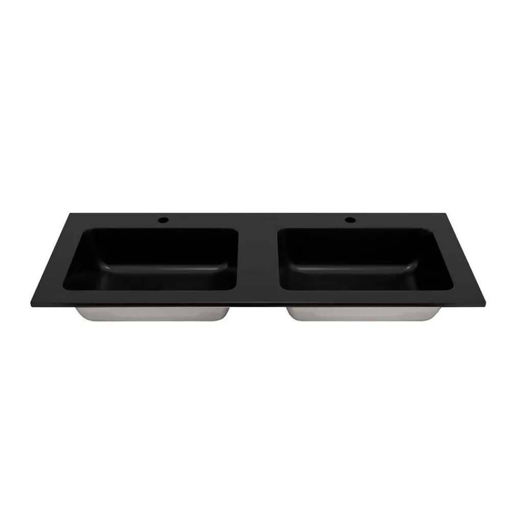 - Schwarzes Mineralguss Doppelwaschbecken, ohne Armaturen und Abfluss Zubehör