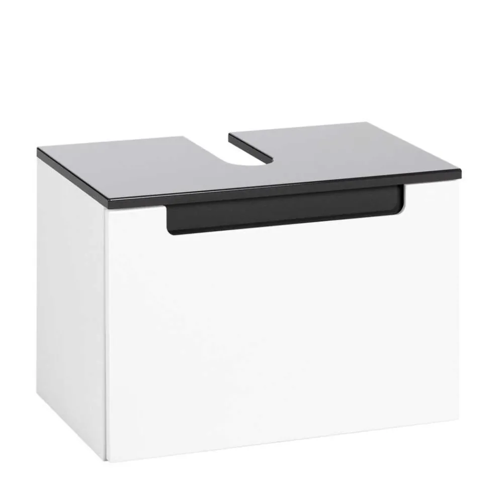 Modernes Design in Perfektion – genau das verkörpert der Waschbeckenunterschrank Tymos. Klare Linien, harmonisch aufeinander abgestimmte Farbkontraste und eine zeitlose Formensprache machen dieses Möbelstück zu einem stilvollen Highlight in jedem Badezimmer. Die Kombination aus strahlend weiß hochglänzenden Fronten und edlen Absetzungen in Hochglanz-Anthrazit verleiht dem Raum Tiefe, Raffinesse und eine luxuriöse Note, die jeden Morgen ein kleines Stück schöner macht.