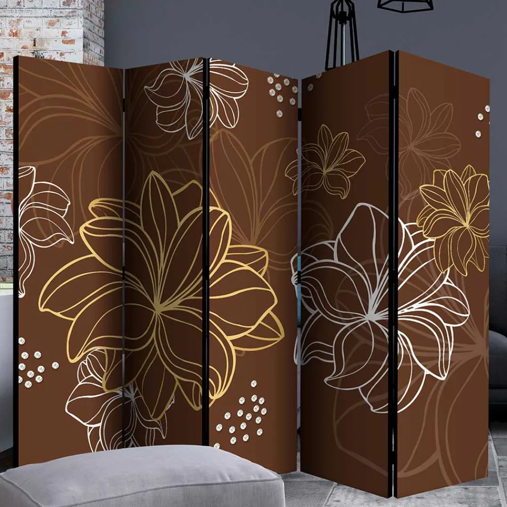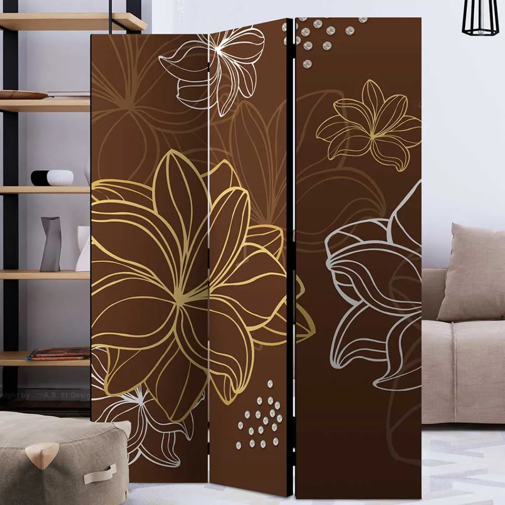 - Praktischer Paravent in Braun, Gelb und Weiß