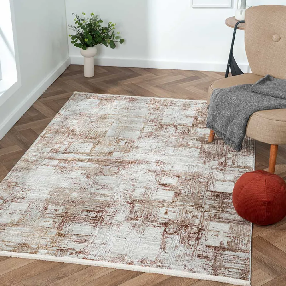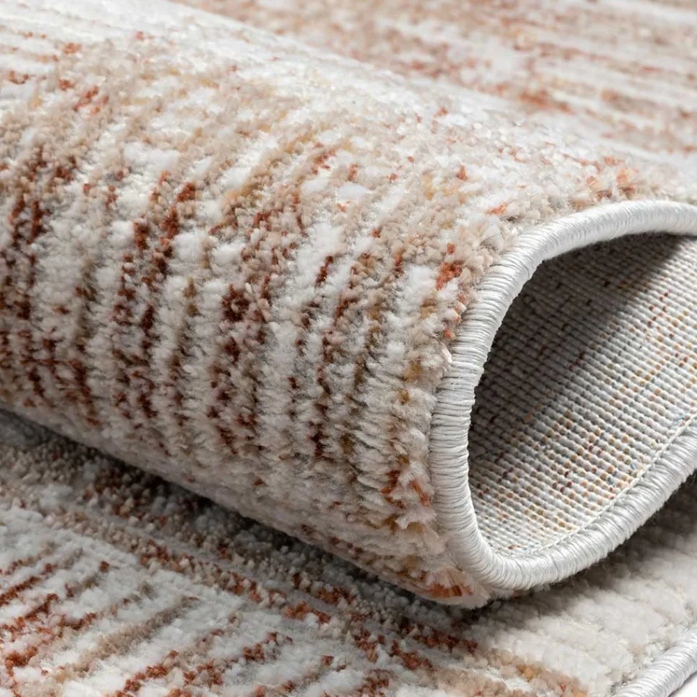 Der Teppich „Stick“ verbindet zeitlose Eleganz mit einem Hauch Vintage und setzt mit seinem feinen Zusammenspiel aus Cremeweiß und Terracotta stilvolle Akzente im Raum. Ob als behaglicher Mittelpunkt im Wohnzimmer oder als warmer Untergrund im Schlafzimmer – das Design wirkt zurückhaltend und dennoch charaktervoll. Die Vintage-Optik bringt einen gemütlichen, leicht nostalgischen Flair ins moderne Wohnkonzept.