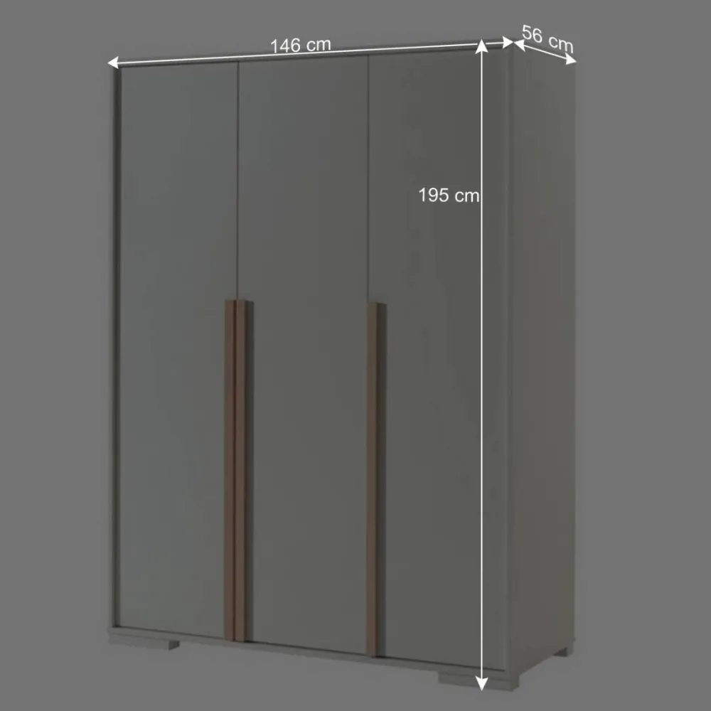 Mit Maßen von 146 cm in der Breite, 195 cm in der Höhe und 56 cm in der Tiefe passt dieser Kleiderschrank mühelos in Ihr Zimmer.
