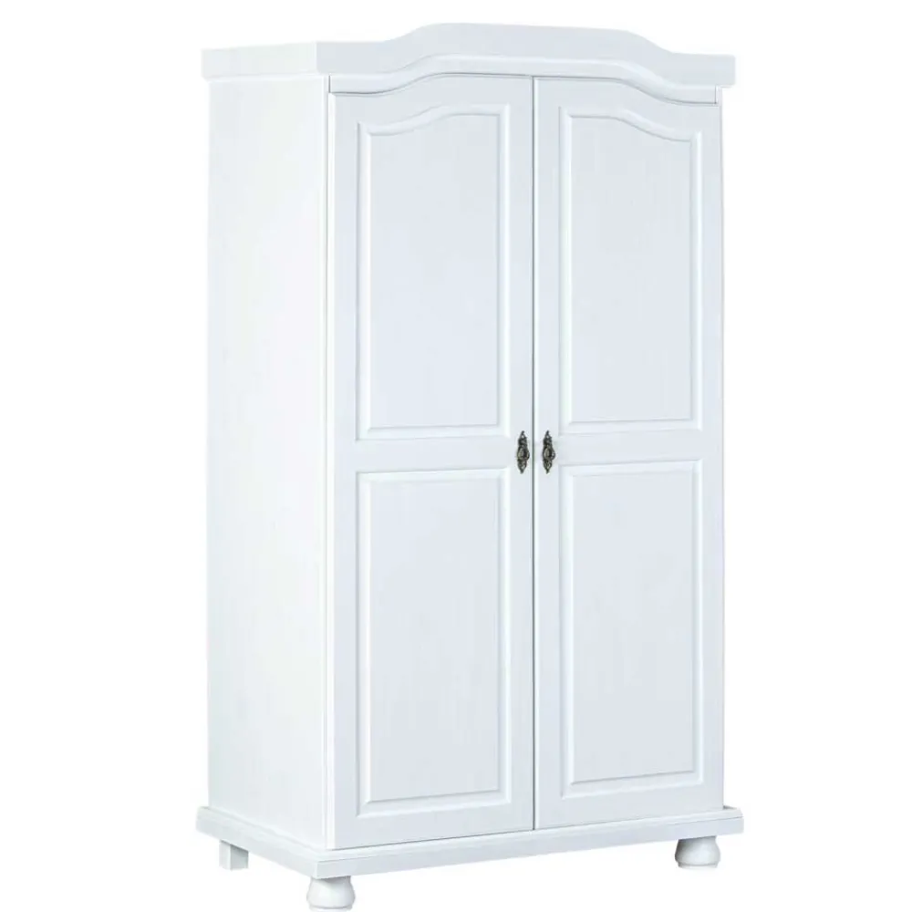 Alle Türen des Kleiderschranks „Nanini“ sind mit dekorativen Metall-Klappgriffen im nostalgischen Look versehen. Diese liebevollen Details verleihen dem Möbelstück einen besonderen Charme und unterstreichen seinen einzigartigen Charakter. Zudem steht der Schrank stabil auf ca. 11 cm hohen gedrechselten Holzfüßen, die ihm einen sicheren Stand verleihen.