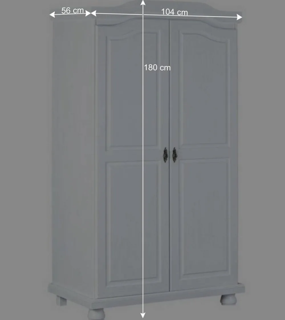 Mit einer Breite von 104 cm, einer Höhe von 180 cm und einer Tiefe von 56 cm bietet Ihnen der Kleiderschrank „Nanini“ reichlich Stauraum für Ihre Kleidung, Accessoires und mehr. Die beiden Türen in hübscher Kassettenoptik sind mit wertigen Metallbeschlägen ausgestattet und verleihen dem Schrank eine nostalgische Note. Im Inneren finden Sie rechts einen Einlegeboden und eine Kleiderstange, während sich links drei weitere Einlegeböden befinden. Dank dieser durchdachten Aufteilung haben Sie Ihre Garderobe stets organisiert und griffbereit.