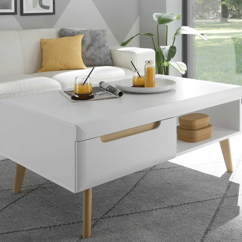Eleganz trifft auf praktische Durchdachtheit – der Wohnzimmertisch „Ginko“ ist ein wahres Schmuckstück für jedes Wohnzimmer, das im beliebten Skandi-Design gehalten ist. Dieser Stil zeichnet sich durch klare Linien, Funktionalität und eine helle, luftige Farbgestaltung aus, perfekt um moderne mit traditionellen Elementen harmonisch zu vereinen.
