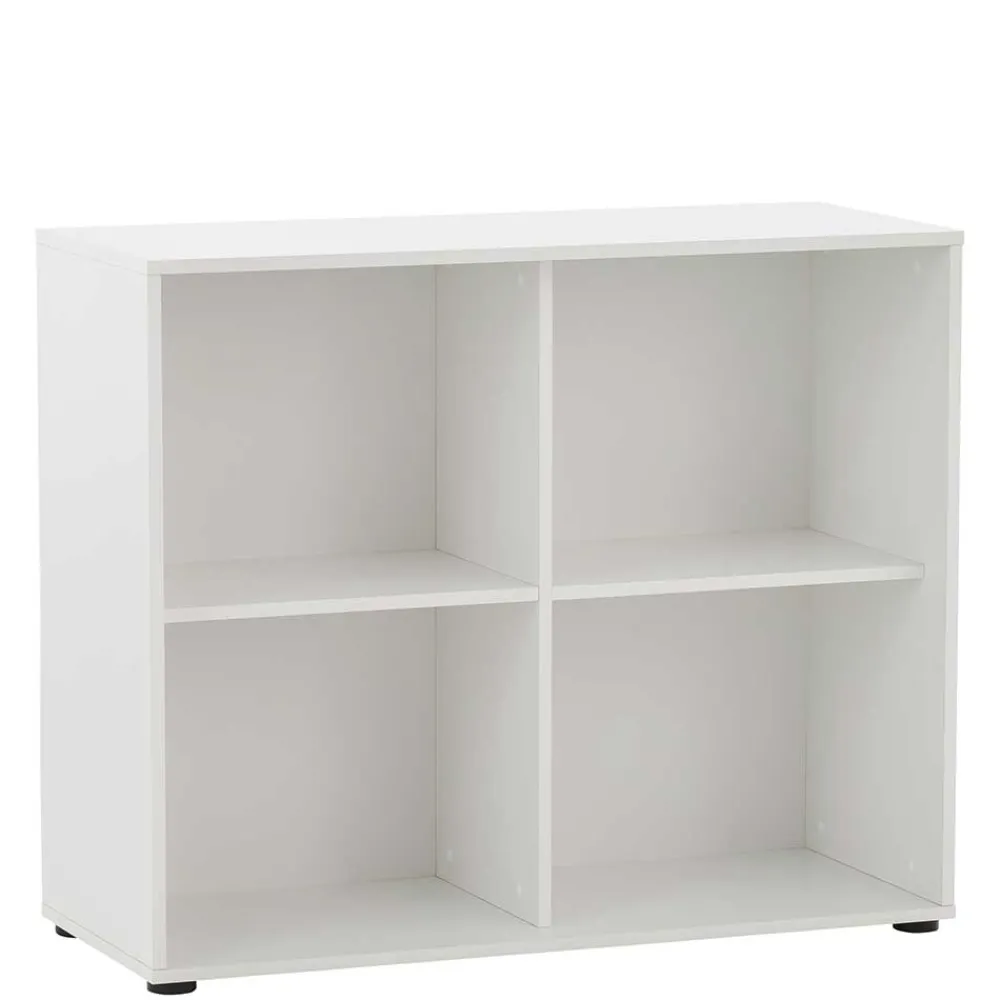 - Oben vier Fächer in Ordnerhöhe und ein herausnehmbares Regalkreuz