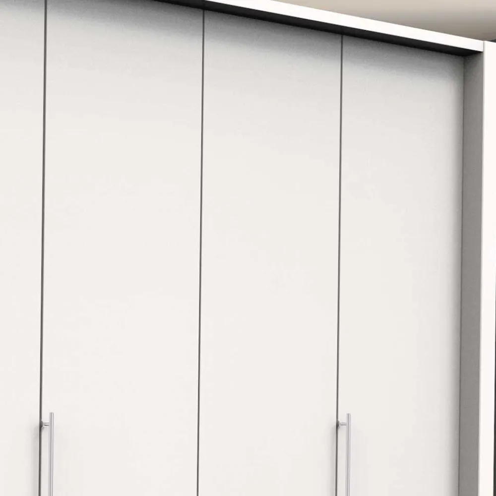 Aus der renommierten deutschen Produktion stammend, präsentiert sich der Falttüren-Kleiderschrank „Donpiave“ als ein Meisterstück modernen Designs. Gefertigt aus hochwertiger Spanplatte, zeichnet sich dieser Kleiderschrank durch eine Oberfläche aus, die sorgfältig in Weiß foliert wurde. Diese Folierung bringt nicht nur eine zeitlose Optik mit sich, sondern bietet auch den Vorteil einer leicht zu reinigenden und äußerst widerstandsfähigen Oberfläche, die Ihrem Schlafzimmer ein helles und einladendes Ambiente verleiht.