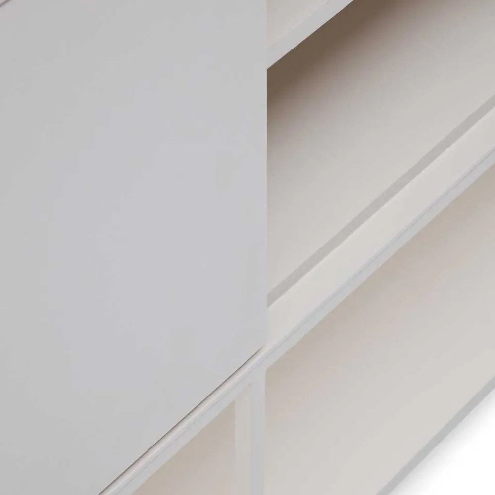 Die geradlinige rechteckige Form und die grifflose Front mit praktischer Push-to-open-Funktion unterstreichen die durchdachte Funktionalität des Sideboards. Innen sorgen ein Einlegeboden pro Fach für optimalen Stauraum. Zwei offene Fächer bieten Platz für Deko oder Bücher, während das halboffene Design mit offenem Ablagebereich unten zusätzlichen Raum für individuelle Gestaltungsmöglichkeiten schafft.