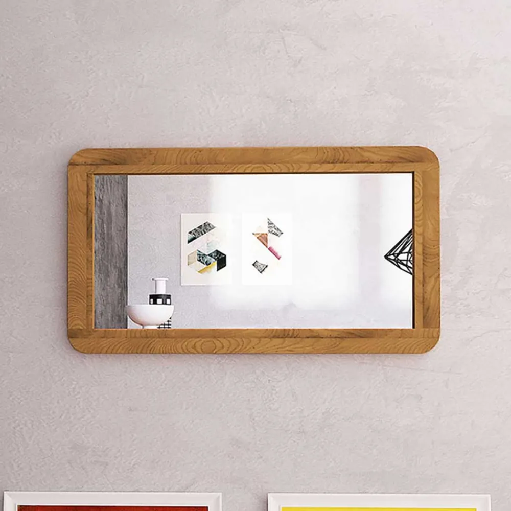 Mit einer Höhe von 60 cm und einer Tiefe von 2 cm bietet der Wandspiegel „Eavy“ in den Breiten 90 cm, 110 cm oder 140 cm für jeden Geschmack das richtige Maß. Das schlichte rechteckige Design, kombiniert mit abgerundeten Kanten und dem edlen Rahmen aus natürlich geöltem Massivholz, fügt sich harmonisch in jeden Raum ein.