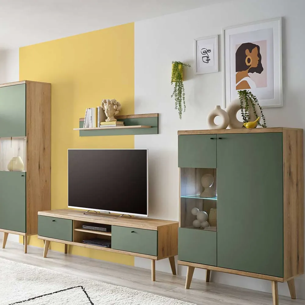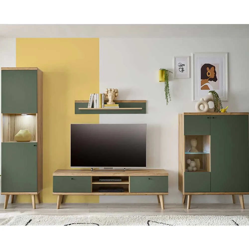 Wohnen Wohnwände|Wohnwand*Skandi Wohnwand in Graugrün - Oliva (vierteilig)