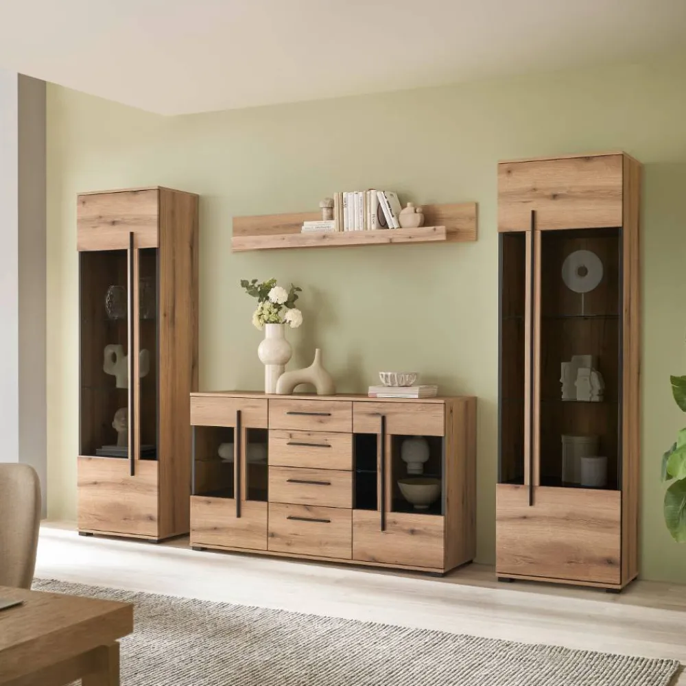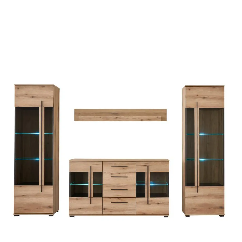 Wohnen Wohnwände|Wohnwand*Vitrinenkombination und Wandboard Set – Brocus (vierteilig)