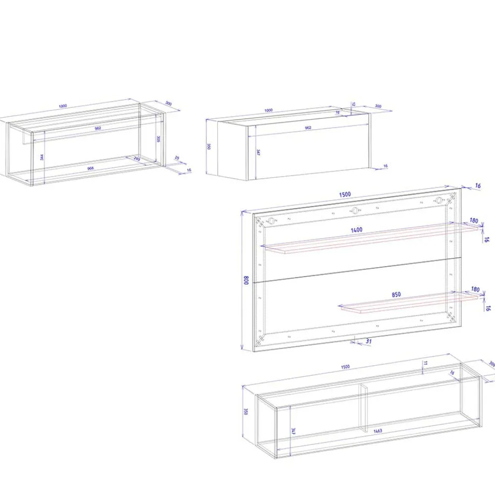 Eleganz und Funktionalität vereinen sich in der Wohnwand „Nonessia“. Moderne Designs zeichnen sich durch klare Linien, minimalistische Formen und eine funktionale Ästhetik aus. „Nonessia“ verkörpert diese Prinzipien perfekt und verleiht jedem Raum eine zeitgemäße Note. Bestehend aus einem breiten und einem schmalen Hängeschrank, einem praktischen Hängesekretär sowie einem stilvollen Paneel, bietet diese Wohnwand eine harmonische Kombination aus Stil und Nutzen.