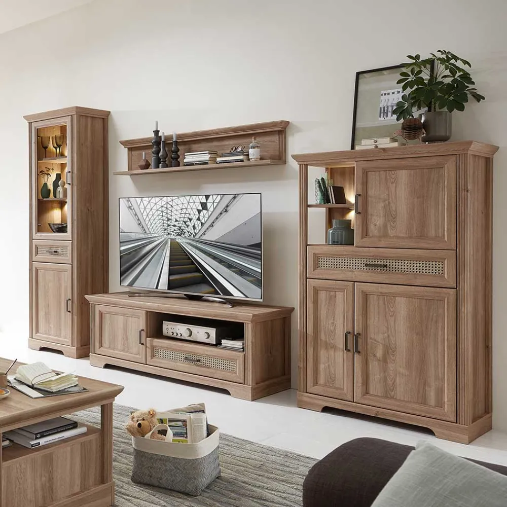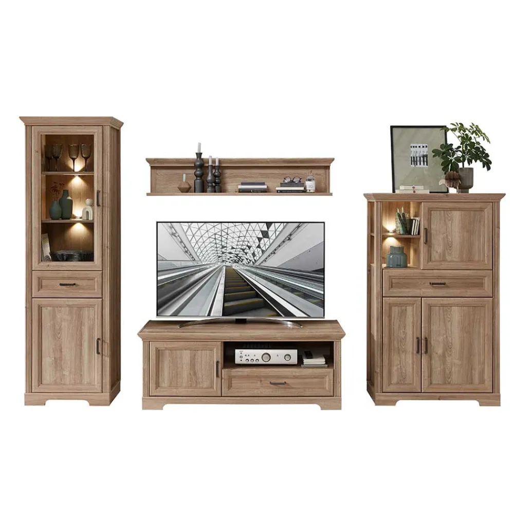Wohnen Wohnwände|Wohnwand*Wohnzimmer Möbelset in Eiche NB – Barack (vierteilig)