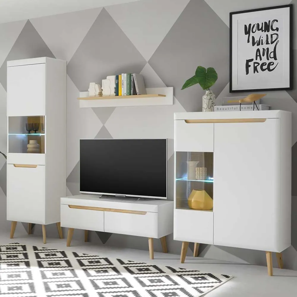 Wohnen Wohnwände|Wohnwand*Wohnzimmer Schrankset im Skandi Design – Ginko (vierteilig)