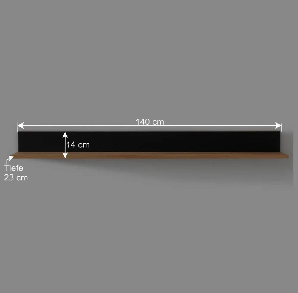 Das Wandboard (BxHxT) 140x14x23 cm überzeugt mit einer Ablage und Rückwand, die zusätzlichen Stauraum und Platz für Dekoration bieten.