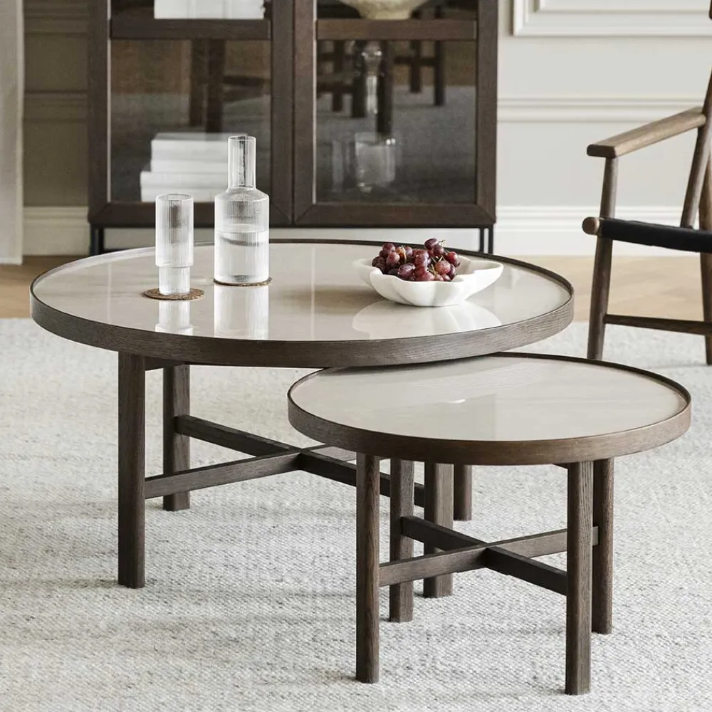 Mit seiner runden Form und den hochwertigen Materialien setzt der Couchtisch „Wyola“ moderne Akzente in Ihrem Wohnbereich. Seine ansprechende Silhouette und die harmonische Kombination aus Holz und Keramik schaffen ein luxuriöses Ambiente, das Sie und Ihre Gäste begeistern wird. Sie können zwischen zwei Größen wählen, die sich perfekt an Ihre Raumverhältnisse anpassen: