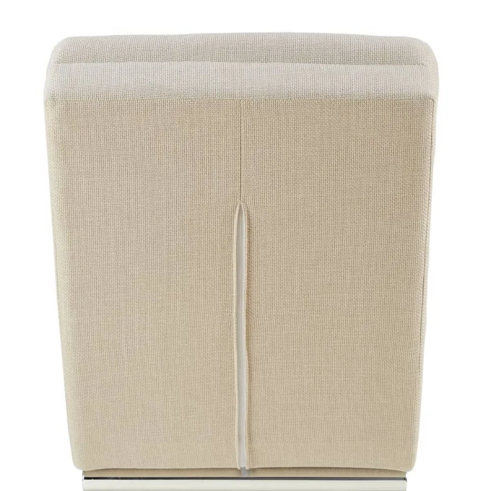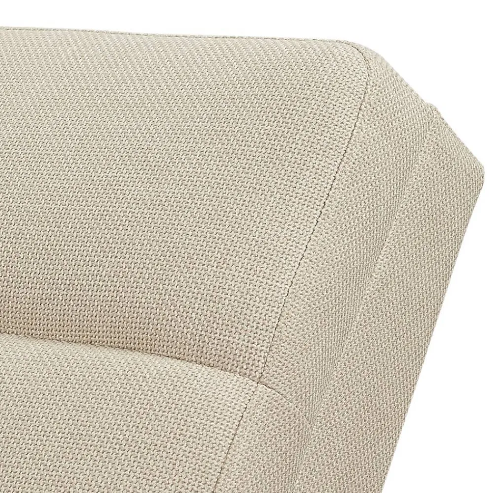 Der Bezug aus robustem Strukturwebstoff (100 % Polyester) begeistert durch seine angenehme Haptik und Langlebigkeit. Mit einer Strapazierfähigkeit von 50.000 Scheuertouren nach Martindale ist er bestens für den täglichen Gebrauch geeignet. Eine solide Unterkonstruktion aus tragfähiger Spanplatte sorgt für Stabilität, während die stangenförmigen Metallfüße in Chrom mit breiter Auflagefläche einen sicheren Stand garantieren.