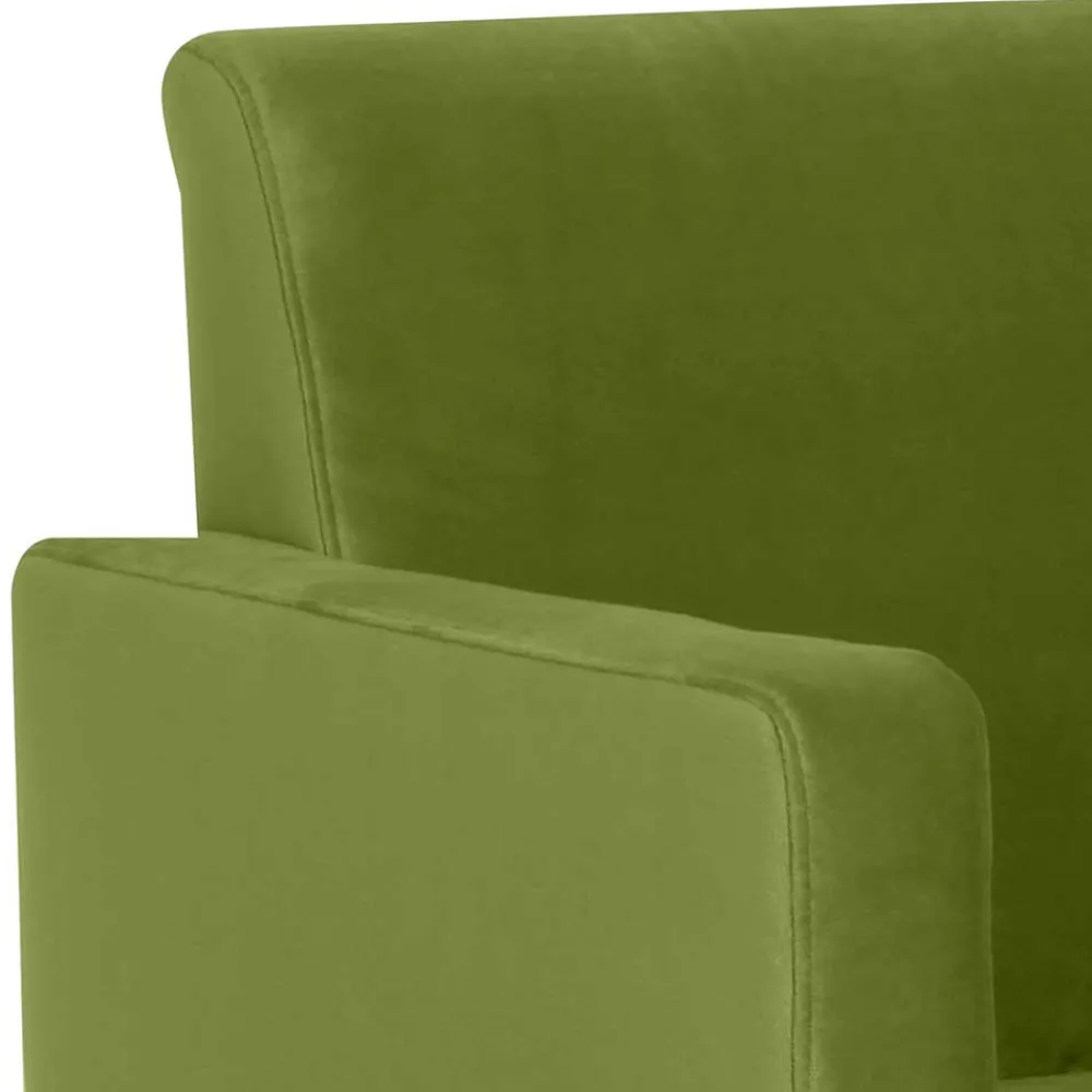 Der Bezug des Sessels besteht aus strapazierfähigem Samtvelours in elegantem Oliv-Grün. Samtvelours ist bekannt für seine luxuriöse Haptik und sein edles Aussehen. Zudem ist dieser Stoff äußerst pflegeleicht und besonders robust. Mit einer Strapazierfähigkeit von 100.000 Scheuertouren nach Martindale ist der Bezug bestens für den täglichen Gebrauch geeignet. Martindale ist ein Standardverfahren, das die Abriebfestigkeit von Textilien misst – ein hoher Wert garantiert eine lange Lebensdauer. Zudem besitzt der Bezug eine Lichtechtheit von 5, was bedeutet, dass die Farbe auch bei intensiver Sonneneinstrahlung nicht verblasst.