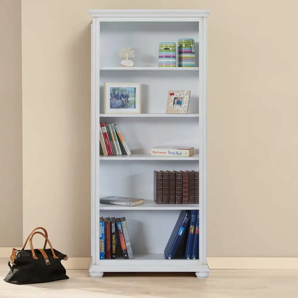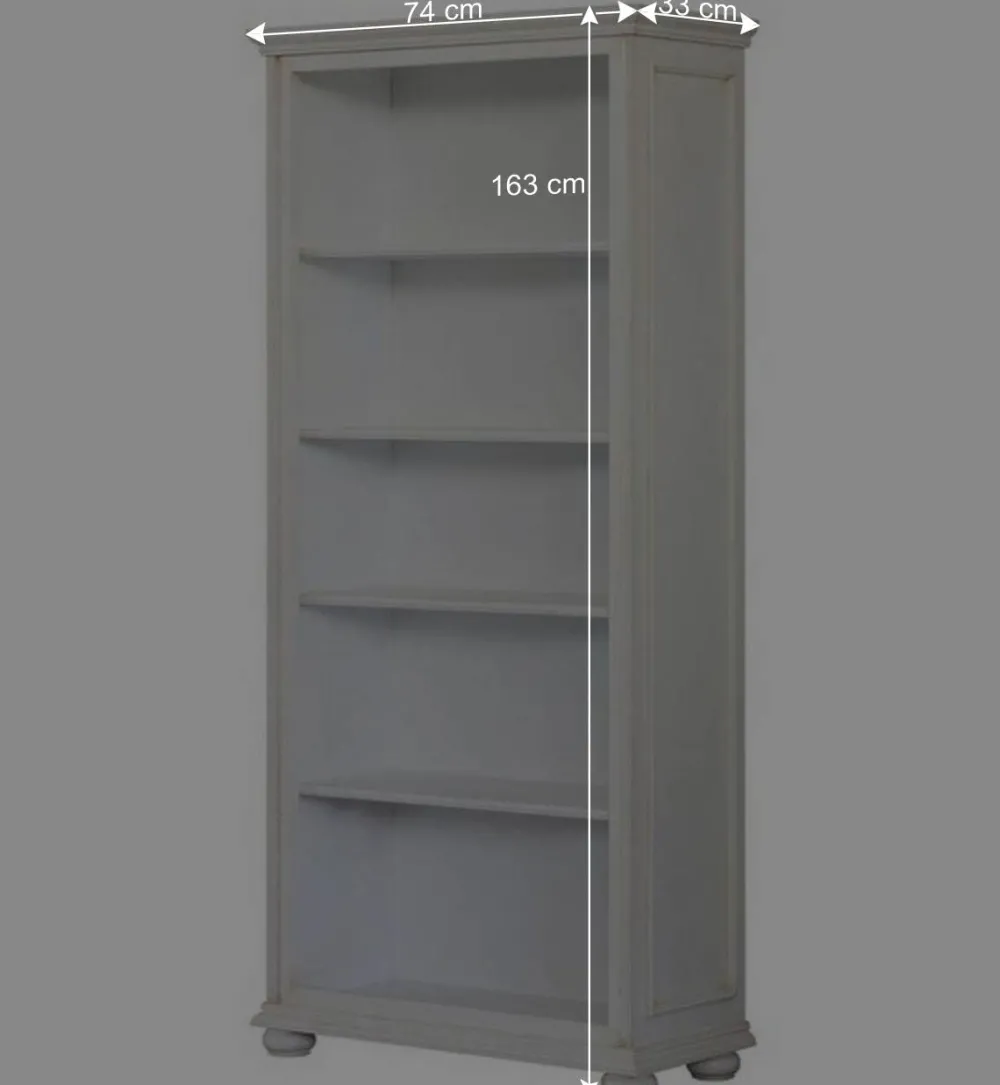 Mit seinem eleganten Antikweiß-Finish und der klassischen Formgebung ist das 5-Fächer-Regal „Vicina“ die perfekte Wahl für eine geschmackvolle Präsentation von Büchern, Deko-Objekten oder Sammlerstücken. Es vereint schlichte Schönheit mit praktischer Funktionalität.