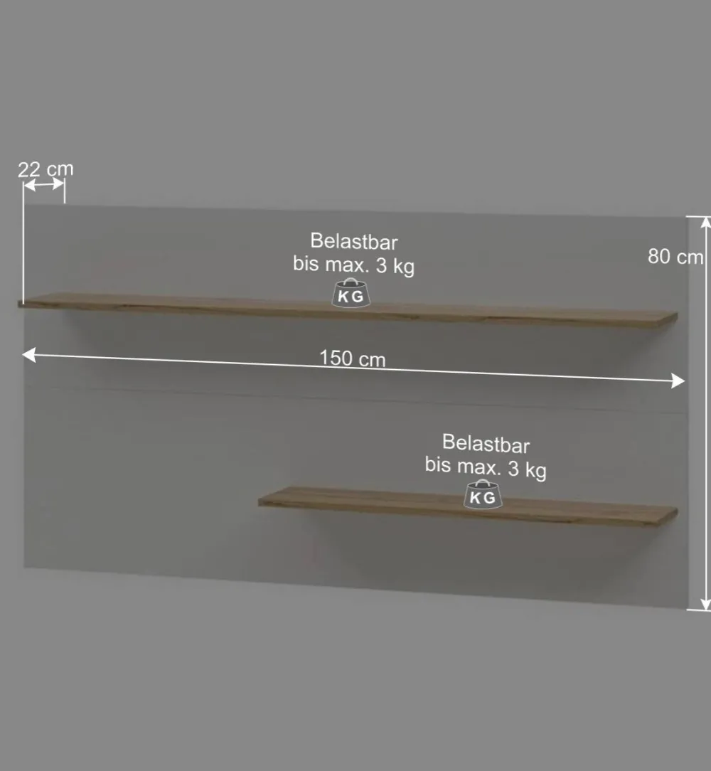 - Zwei Ablageböden mit einer Tiefe von 18 cm, Breite: 140 und 85 cm