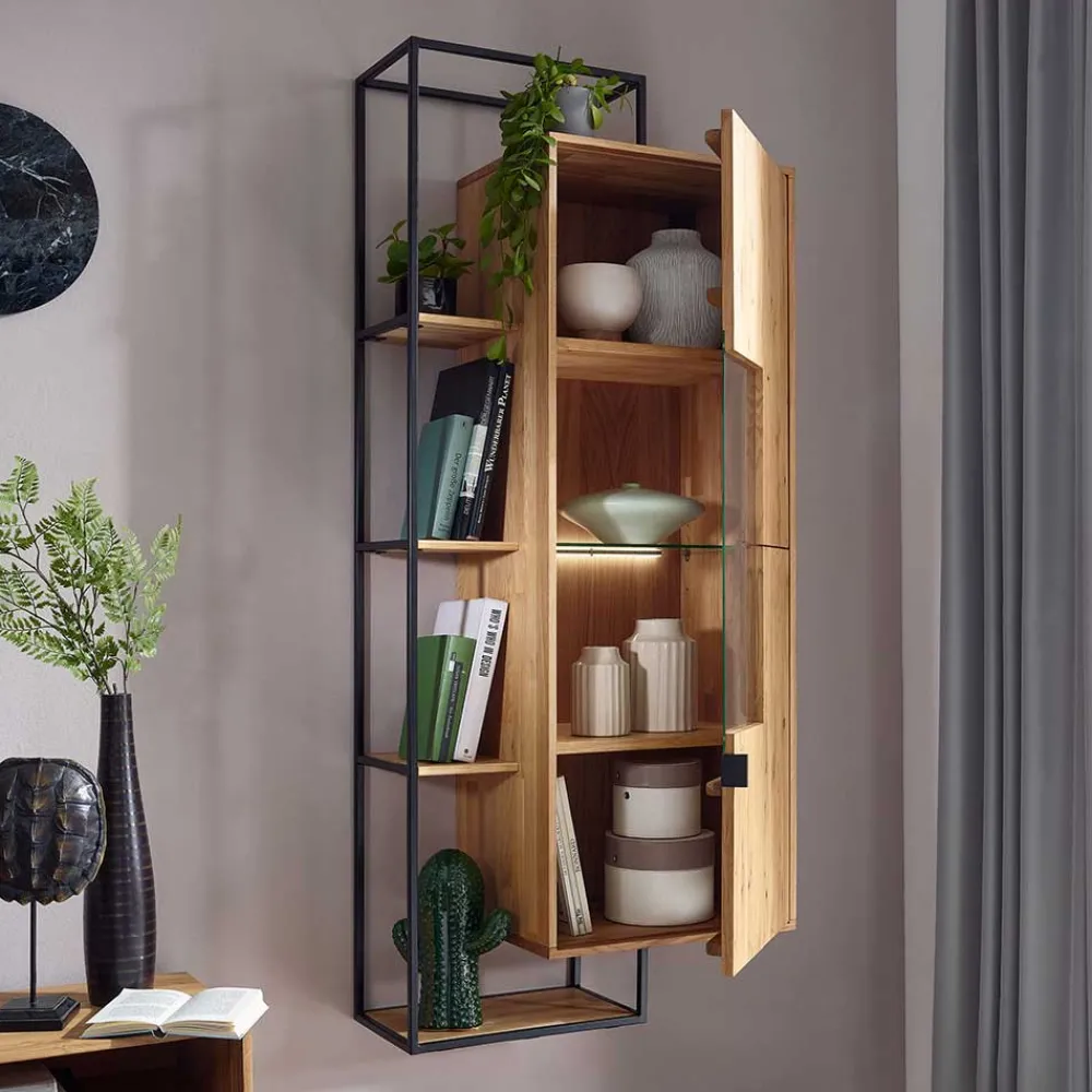- Attraktive Hängevitrine in Wildeichefarben und Schwarz