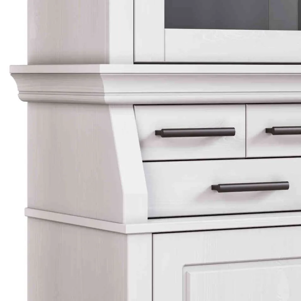Die antikweiß gewachste Oberfläche verleiht dem Buffetschrank seinen unverwechselbaren Charakter. Die leicht matte, zart schimmernde Oberfläche wirkt wie von Hand veredelt und unterstreicht den charmanten Vintage-Look. Gleichzeitig ist sie besonders pflegeleicht – ein feuchtes Tuch genügt, um Staub oder leichte Verschmutzungen mühelos zu entfernen. So bleibt „Curcay“ über Jahre hinweg genauso schön wie am ersten Tag.