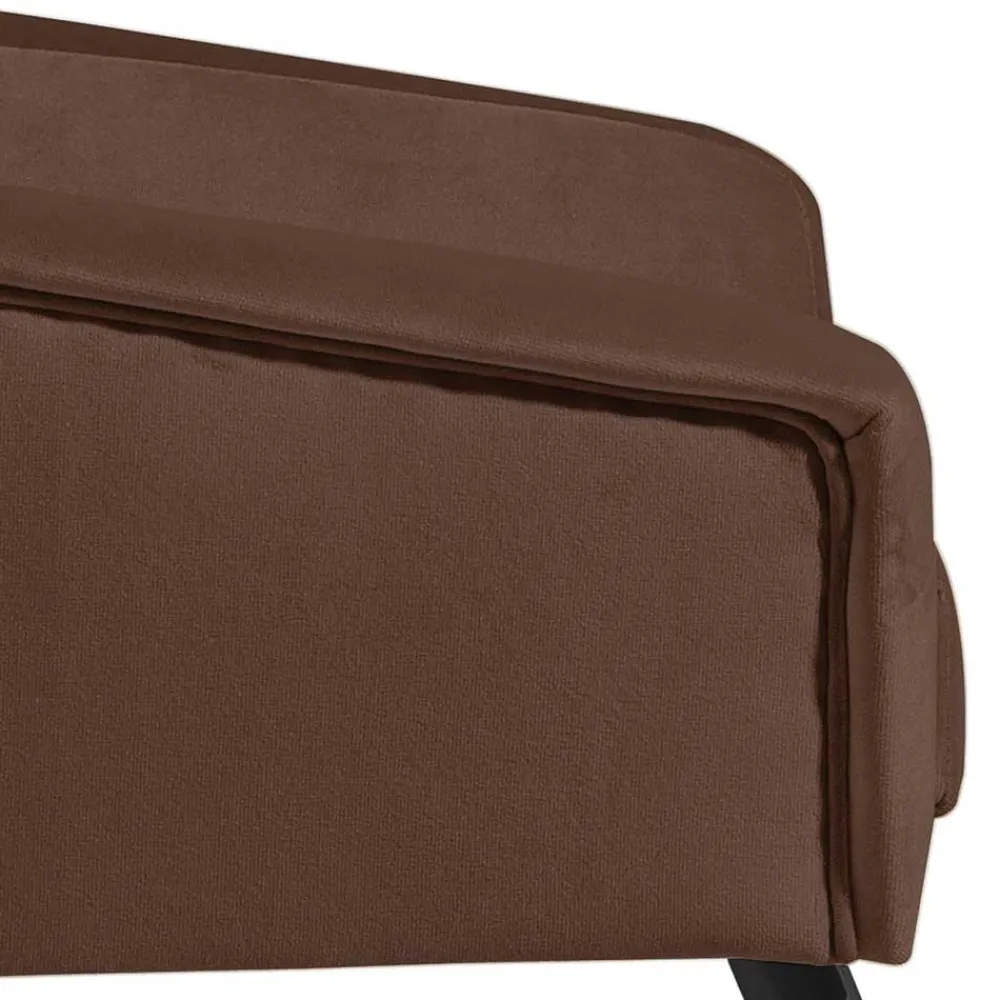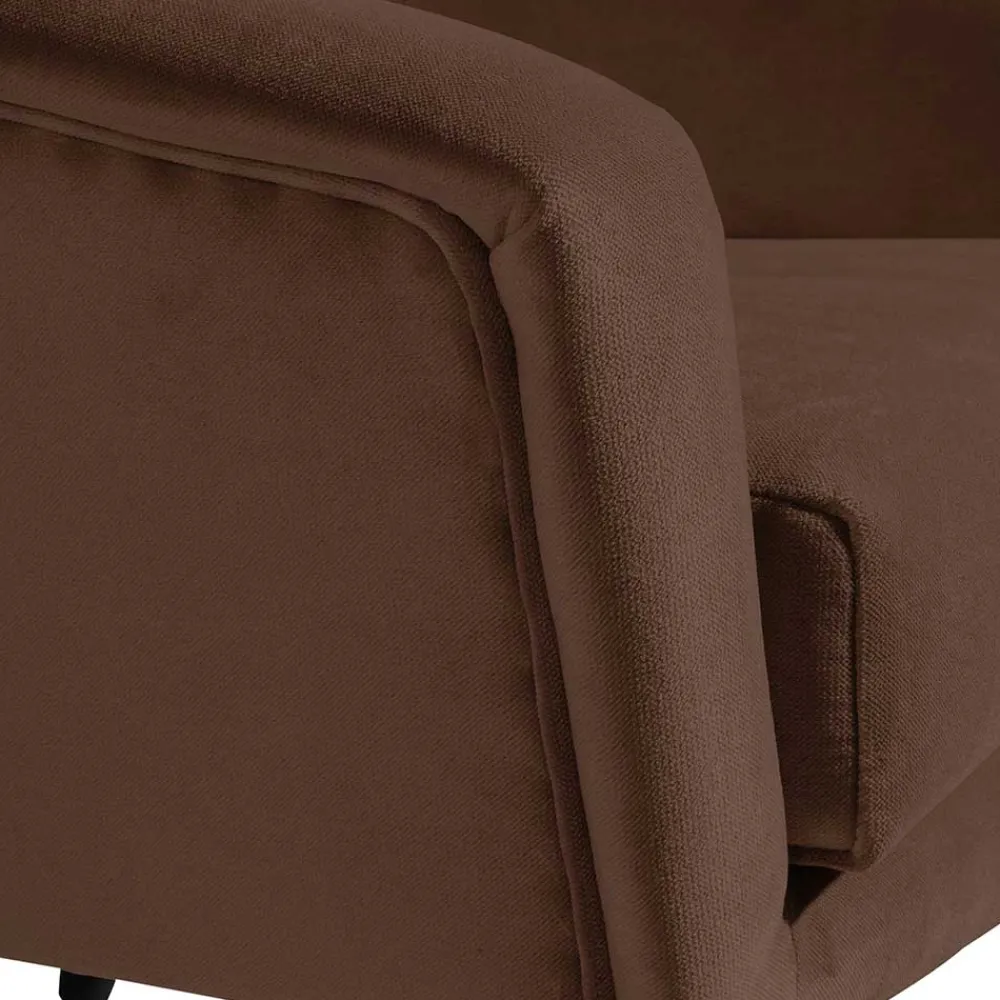 Der Bezug aus Samtvelours in einem ansprechenden Farbmix aus Braun und Schwarz verleiht dem Sessel einen edlen Touch. Dank einer Strapazierfähigkeit von 100.000 Scheuertouren nach Martindale ist er zudem besonders langlebig und pflegeleicht.
