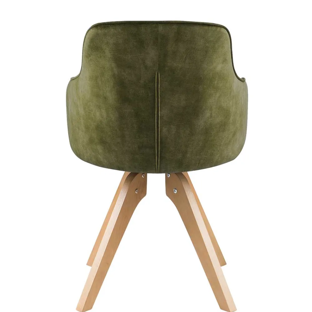 Jeder „Quintessa“ Stuhl wird aus Materialien höchster Qualität gefertigt. Die Kombination aus langlebigem Veloursbezug und robustem Buchenholzgestell gewährleistet, dass dieser Stuhl nicht nur schön aussieht, sondern auch den Ansprüchen des täglichen Gebrauchs mühelos standhält. Der in Vintage-Optik gehaltene olivgrüne Veloursstoff (100% Polyester) ist nicht nur ein optischer Hingucker, sondern auch besonders pflegeleicht und strapazierfähig.