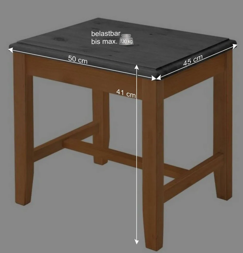 Die 1A Verarbeitungsqualität des „Eshelas“ Hockers spiegelt sich nicht nur in der Optik, sondern auch in der maximalen Belastbarkeit von 130 kg wider. Mit einer Sitzhöhe von ca. 41 cm und einer großzügigen Sitztiefe von 45 cm bietet er höchsten Komfort. Im Landhausstil designt, fügt er sich perfekt in unterschiedlichste Wohnkonzepte ein.