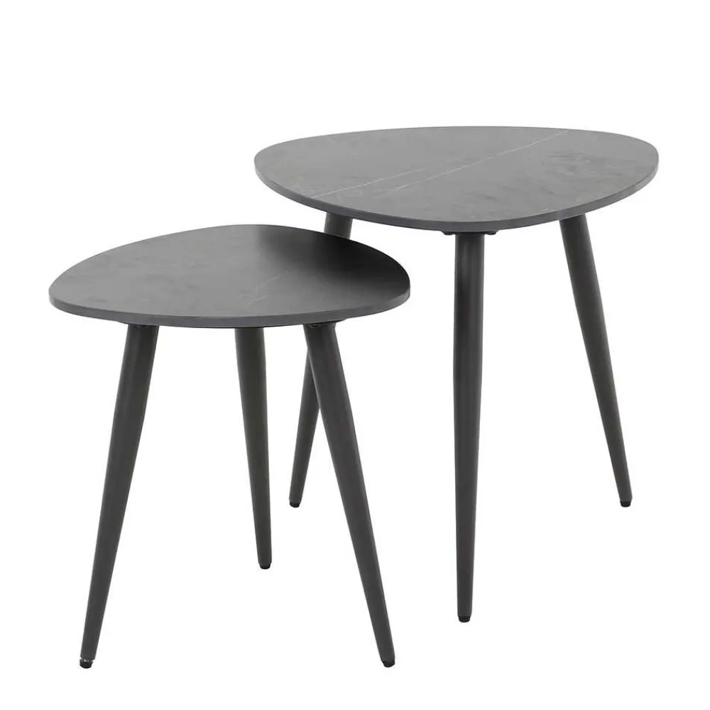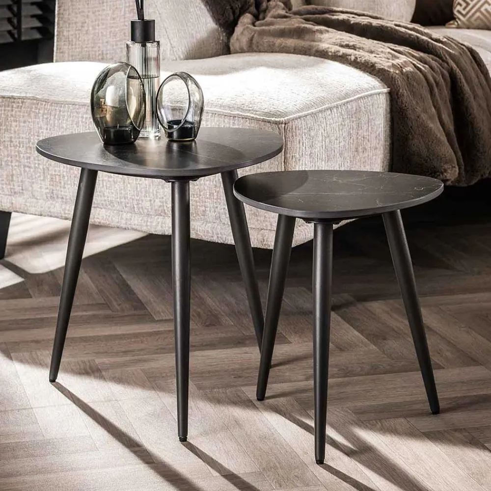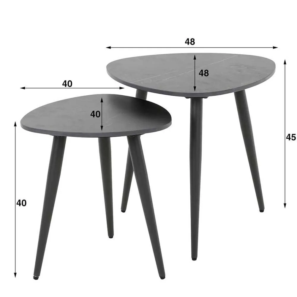 Ein besonderes Highlight dieses Tisch-Sets ist das dreibeinige, schwarze Metall-Gestell. Dieses Design sorgt nicht nur für eine besonders ästhetische Optik, sondern gewährleistet auch einen sicheren und stabilen Stand, der die Tische in ihrem täglichen Einsatz unterstützt. Dank der robusten Verarbeitung und der hochwertigen Materialien bietet das Tisch-Set „Yaliaz“ Langlebigkeit und Stabilität auf höchstem Niveau.