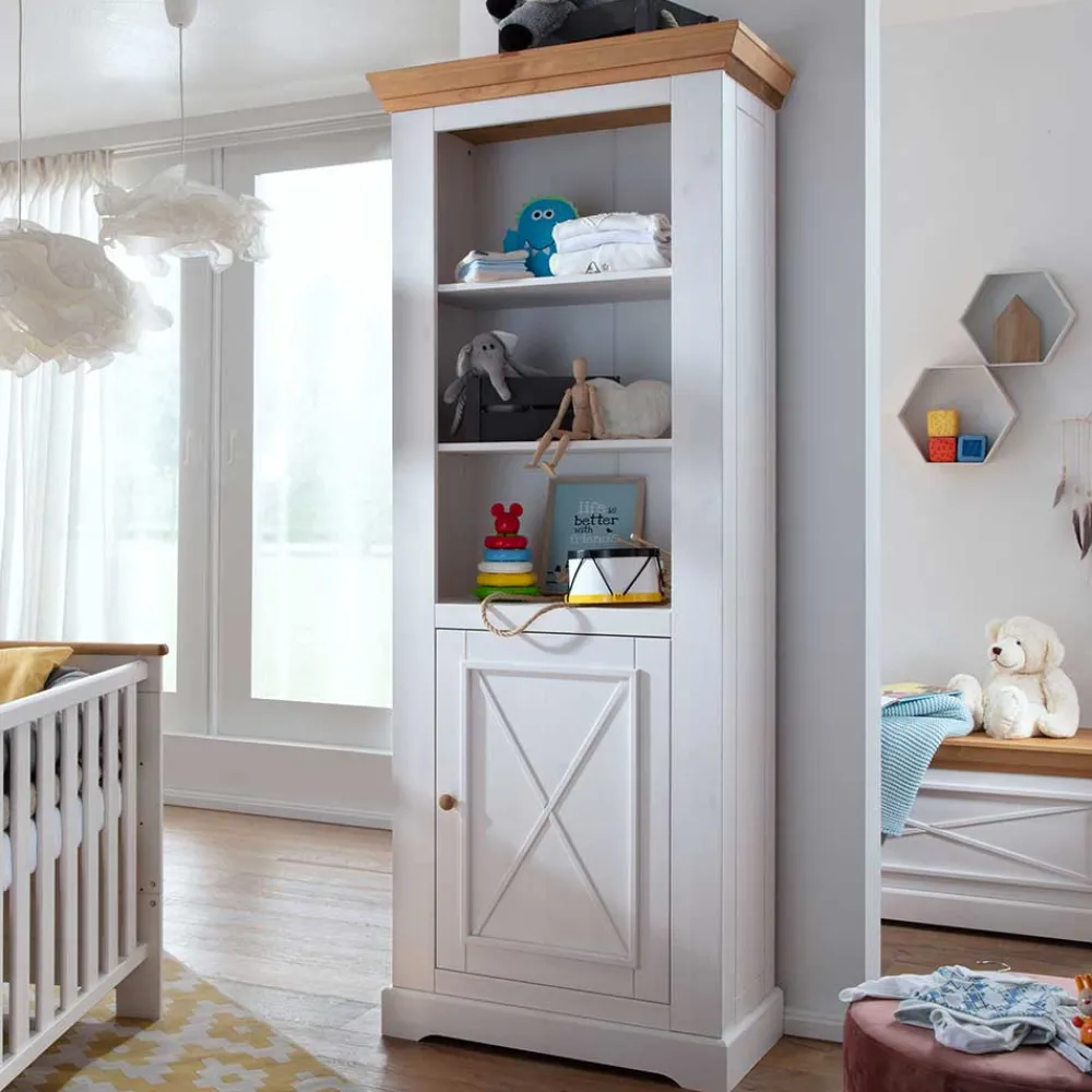 Hergestellt aus massivem Kiefernholz, verspricht dieses Regal nicht nur Langlebigkeit, sondern auch einen umweltfreundlichen Charakter. Kiefernholz ist bekannt für seine Robustheit und Beständigkeit. Es ist nicht nur hart und widerstandsfähig, sondern verleiht auch jedem Möbelstück eine individuelle Maserung, die es einzigartig macht.