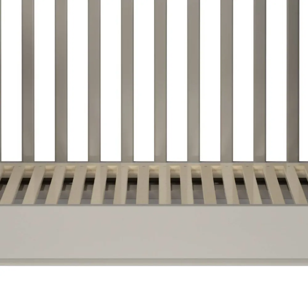 Im Lieferumfang enthalten ist ein stabiler Lattenrost aus unbehandeltem Massivholz, der sich auf drei verschiedenen Ebenen im Bettgestell einlegen lässt. So ist anfangs ein komfortables Hineinlegen möglich – und später, wenn das Kind mobiler wird, eine sichere Schlafhöhe gewährleistet. Der elterliche Rücken sagt danke, und das Kind schläft sicher und geschützt.