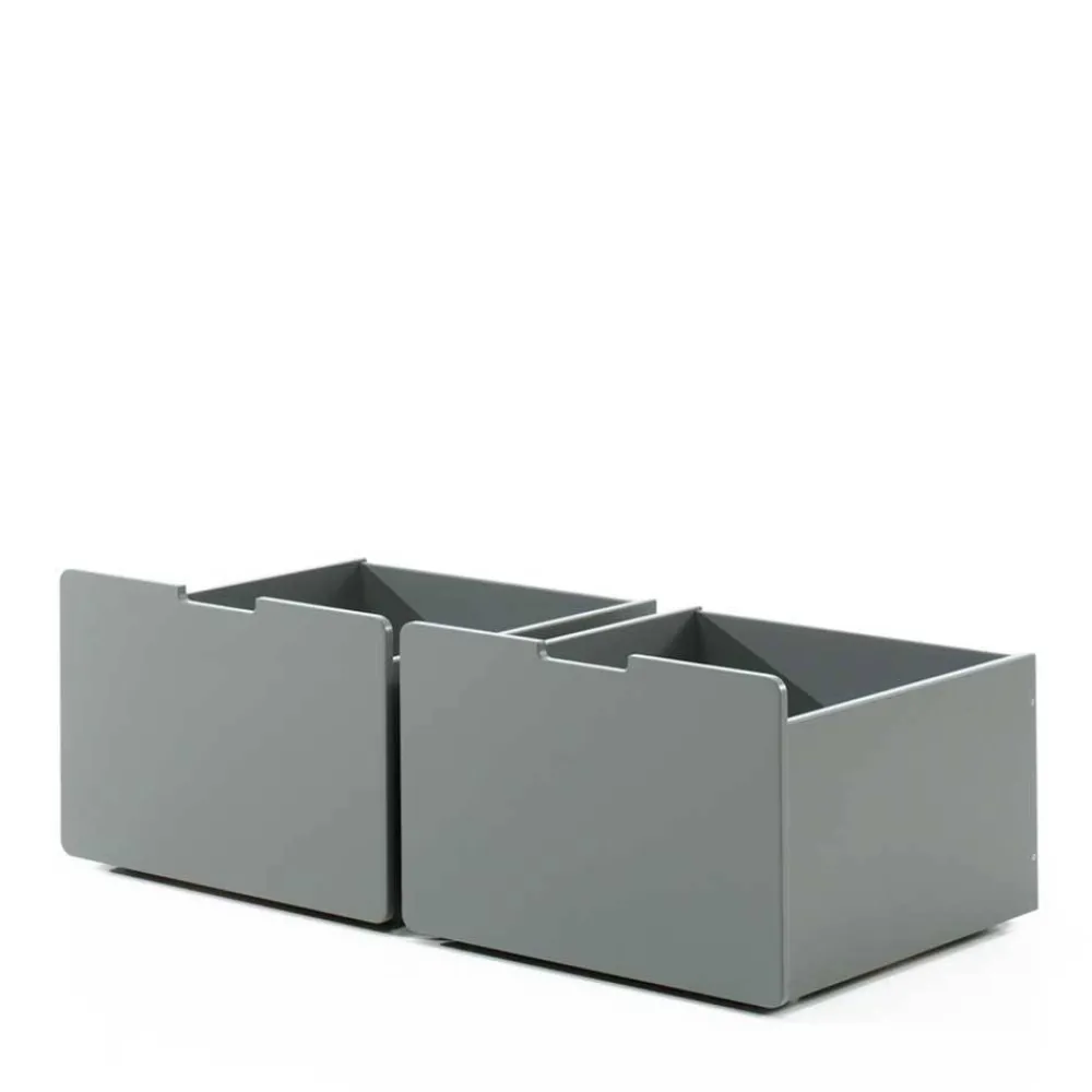 Unter dem Bett befindet sich ausreichend Platz für das passende Schubladen-Set, das mit zwei praktischen Containern ausgestattet ist. Mit abgerundeten Fronten und einer Stellfläche von je 49,6×39,6×60 cm bieten diese Schubkästen eine clevere Lösung zur Aufbewahrung von Spielzeug, Bettwäsche oder Kleidung.