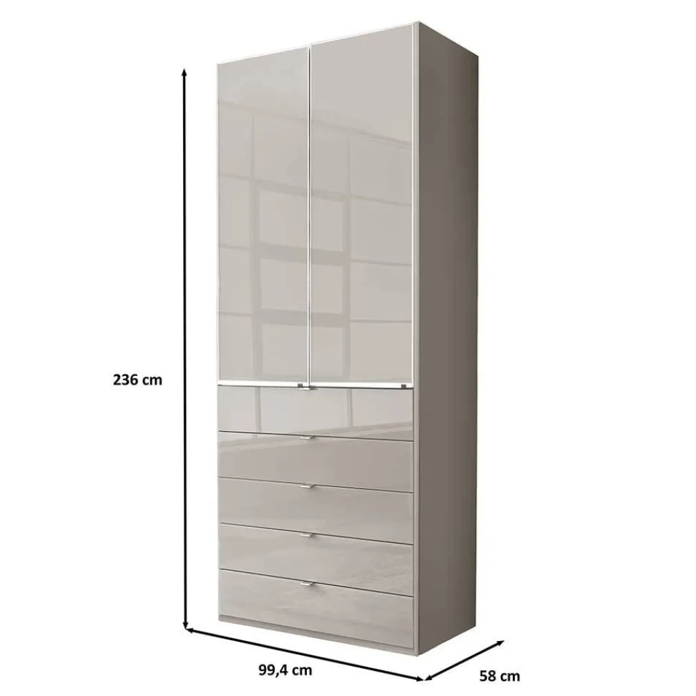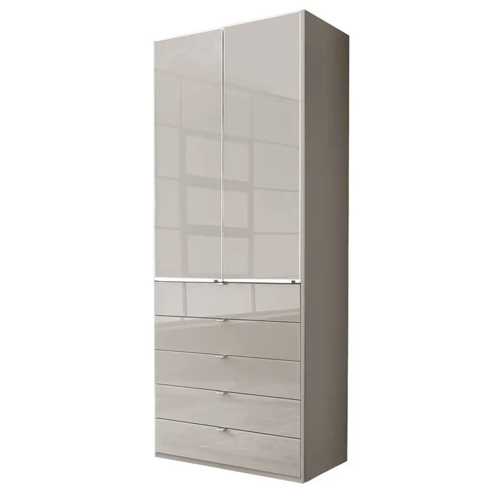 Verleihen Sie Ihrem Schlafzimmer mit dem 100 cm breiten Schlafzimmerschrank „Nucina“ einen Hauch von modernem Flair. Die Front in Hellgrau mit Glasbeschichtung harmoniert perfekt mit dem ebenfalls hellgrauen Korpus, der dem Schrank ein schlankes und elegantes Erscheinungsbild verleiht. Dieser Schrank ist ein Paradebeispiel für anspruchsvolle und durchdachte Möbelgestaltung aus deutscher Fertigung.