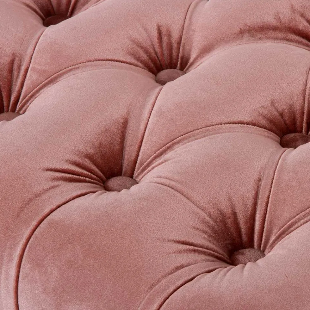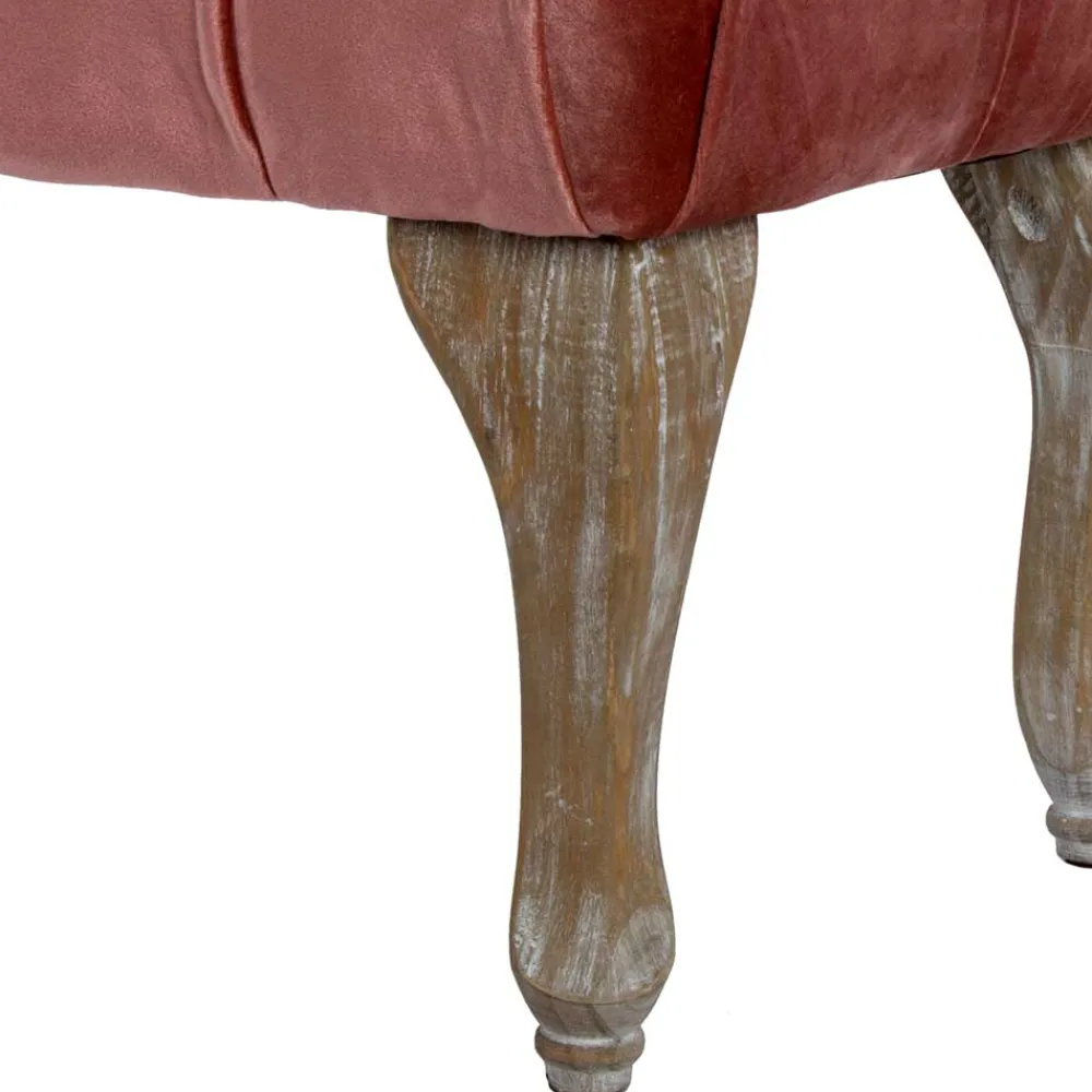 Fregato verbindet zwei Materialien, die unterschiedlicher nicht sein könnten, aber gemeinsam ein traumhaftes Wohngefühl schaffen. Der samtige Bezug in zartem Rosa besteht zu 100 % aus hochwertigem Polyester – langlebig, pflegeleicht und mit einer besonders angenehmen Haptik. Die dekorative Knopfheftung verleiht der Sitzfläche eine klassische Note und sorgt für eine stilvolle Optik, die in jeder Einrichtung einen eleganten Akzent setzt. Das massive Holzgestell bringt Stabilität und Natürlichkeit ins Spiel. Robust, standfest und ausdrucksstark in seiner weiß gewischten Oberfläche, trägt es nicht nur die Sitzfläche, sondern auch die Seele dieses Möbels.