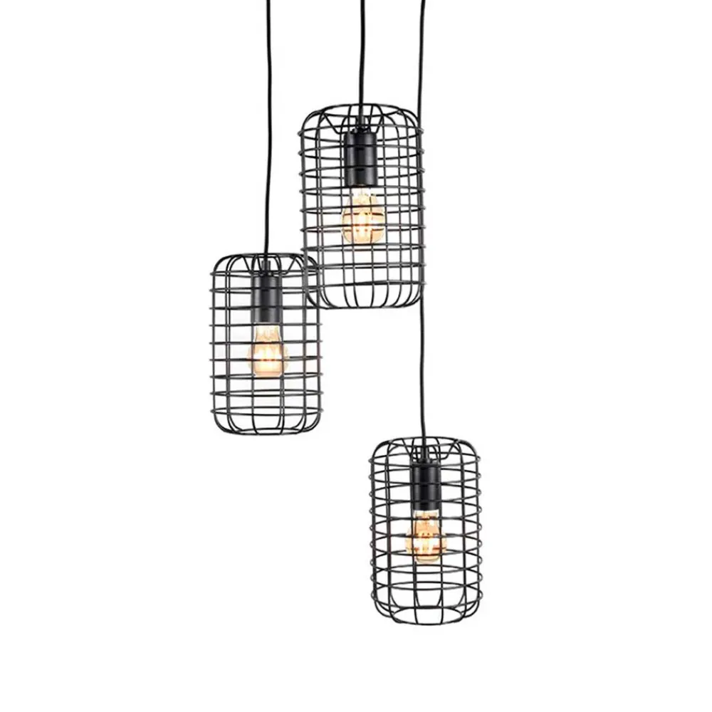 Verleihen Sie Ihren Wohnräumen ein außergewöhnliches Ambiente mit der 3-flammigen Pendelleuchte „Troketta“. Mit ihrem markanten Design im angesagten Industrie- und Loft-Stil setzt sie stimmungsvolle Lichtakzente und wird gleichzeitig zum dekorativen Blickfang in Ihrem Zuhause. Die Kombination aus schwarzem Metall und filigranen Drahtgitterschirmen verleiht der Leuchte eine faszinierende Optik, die sich harmonisch in verschiedenste Einrichtungskonzepte einfügt – ob über dem Esstisch, in der Küche oder im Wohnzimmer.