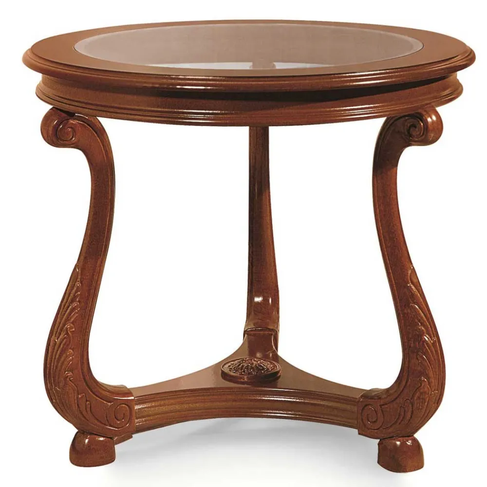 Mit seiner kompakten, runden Form (60 x 60 cm, 56 cm hoch) lässt sich der Beistelltisch mühelos in jedes Raumkonzept integrieren – ob als stilvoller Begleiter neben dem Sofa, als Ablage im Eingangsbereich oder als dekoratives Highlight im Schlafzimmer. Die Glasplatte mit stabilem MDF-Rahmen setzt edle Akzente, während die kunstvoll gefrästen Kanten handwerkliche Perfektion beweisen.