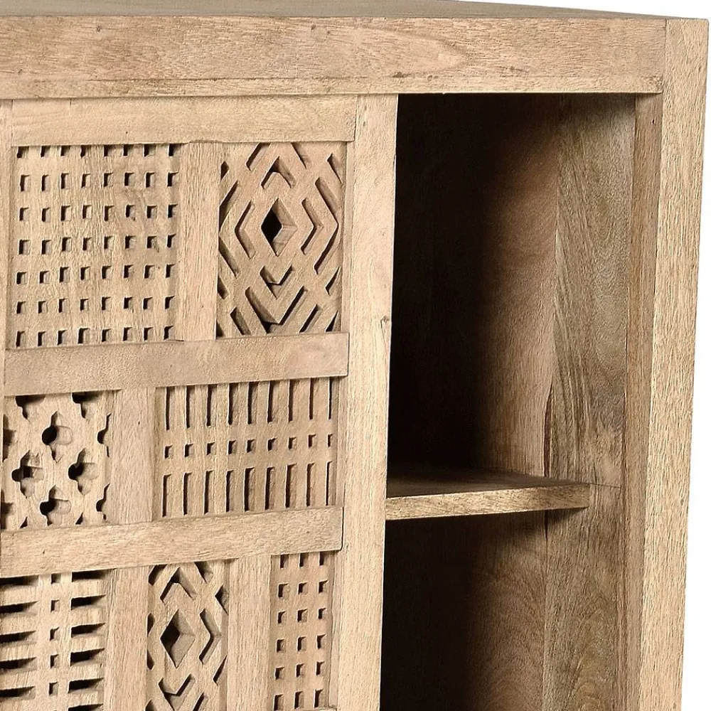 Bringen Sie einen Hauch von Individualität in Ihr Zuhause: Die Türen-Kommode „Valuta“ verbindet natürliche Materialien mit einer unverwechselbaren Gestaltung. Gefertigt aus hochwertigem Mangoholz, präsentiert sie sich in warmen Naturtönen, die Ihren Wohnraum behaglich und einladend wirken lassen. Das Ethno-Flair und die handgearbeiteten Details machen dieses Möbelstück zu einem absoluten Blickfang – perfekt für Wohnzimmer, Essbereich oder Flur.