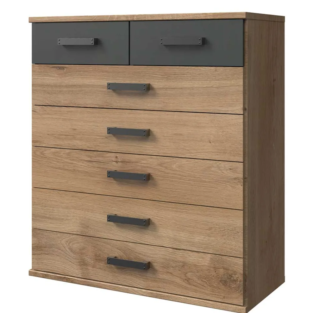 - Trendige Kommode in Eichefarben und Dunkelgrau