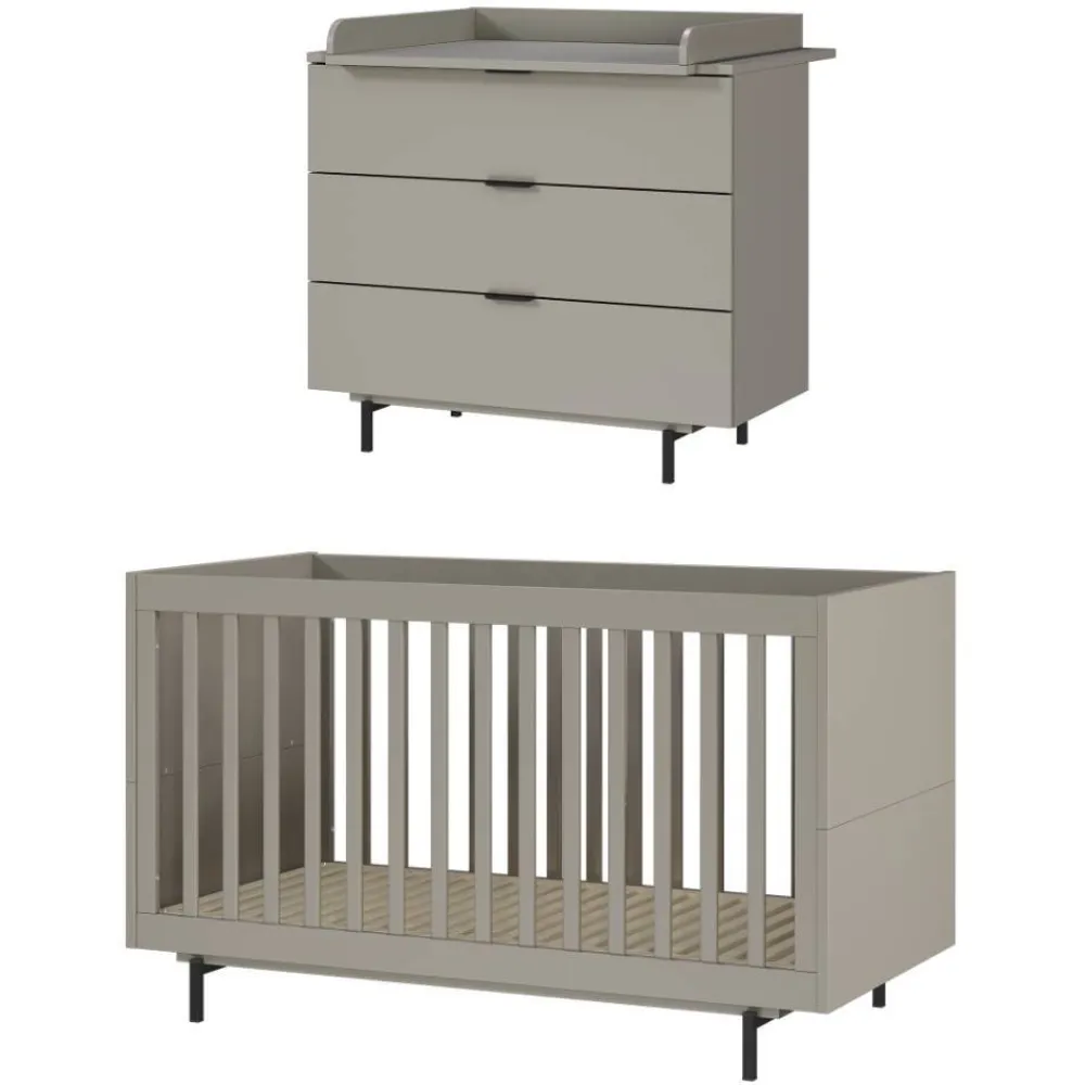 Wenn Design auf Funktionalität trifft, entsteht mehr als nur Einrichtung – das Set aus Babybett und Wickelkommode „Suzanas“ vereint ästhetische Klarheit mit durchdachten Details. In dezentem Grau mit schwarzen Akzenten gehalten, passt das Ensemble perfekt in jede moderne Babyzimmereinrichtung. Die Farbkombination ermöglicht vielfältige Stilrichtungen – von verspielt bis minimalistisch. Als Teil des umfangreichen Kindermöbel-Programms „Suzanas“ bei Wohnen.de lässt sich das Set problemlos mit weiteren Produkten ergänzen und stimmig erweitern.