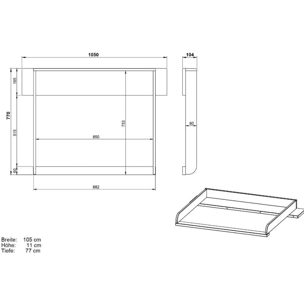 - Wickelaufsatz mit Dreiseiten-Rausfallschutz, Maße: BxHxT: 105x11x77 cm, bis max. 15 kg belastbar, Nettogewicht ca. 9 kg