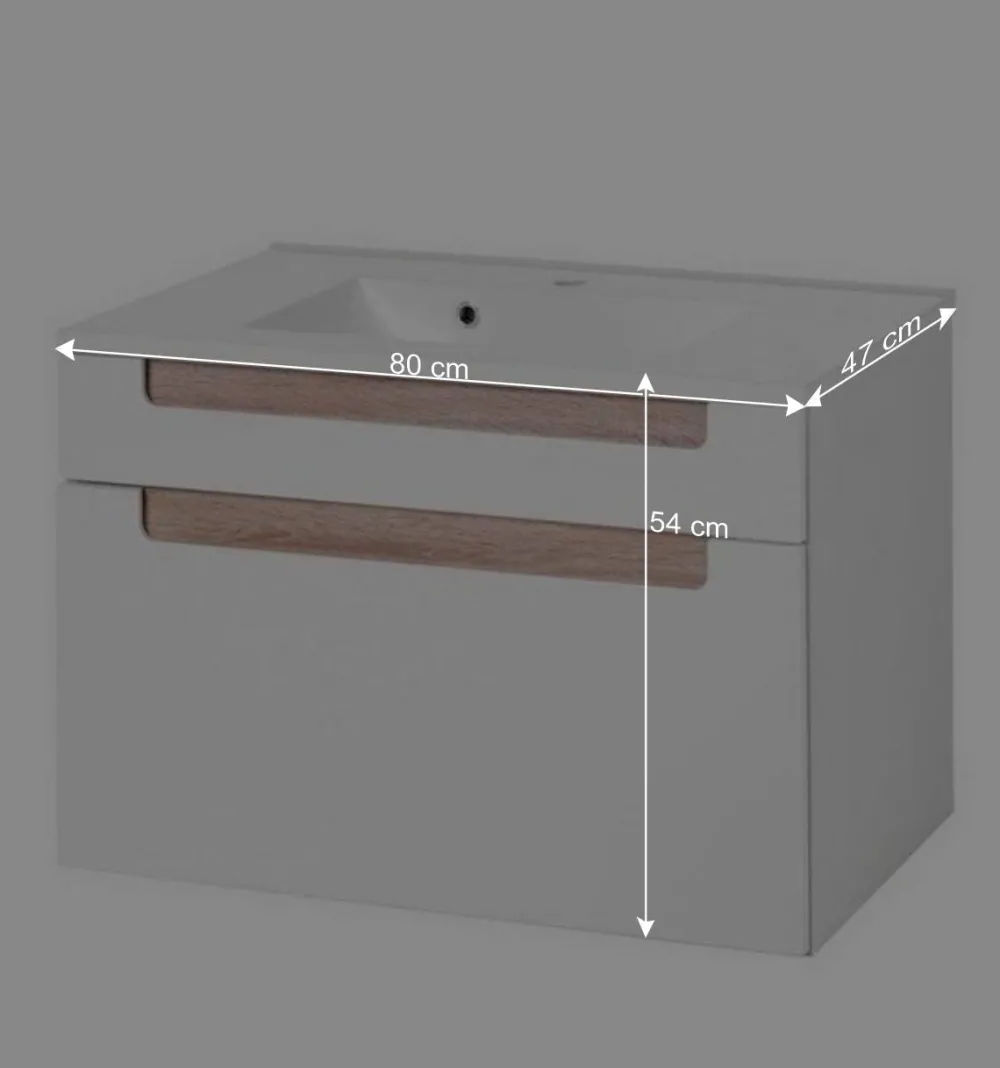 Mit einer Breite von 80 cm, einer Höhe von 54 cm und einer Tiefe von 47 cm bietet dieser Unterbeckenschrank erstaunlich viel Stauraum für alle Badutensilien, ohne dabei wuchtig zu wirken. Die elegante Linienführung verleiht ihm eine moderne, schwebende Leichtigkeit, die durch die Wandmontage noch betont wird. Der großzügige Auszug gleitet dank langlebiger Metall-Laufleisten geschmeidig und leise – ein Komfort, den man jeden Tag spürt.