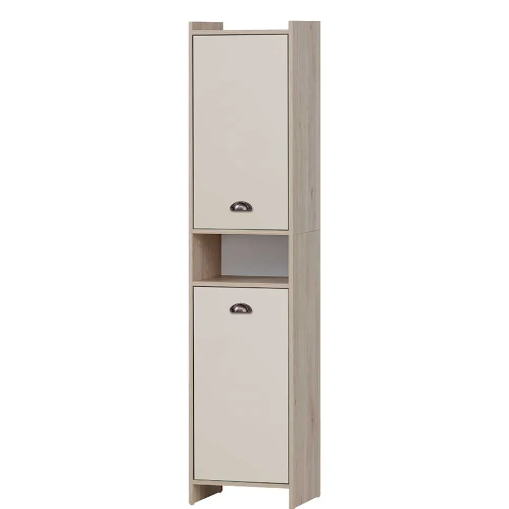 - Junger Bad Hochschrank in Cremeweiß und Eiche hell