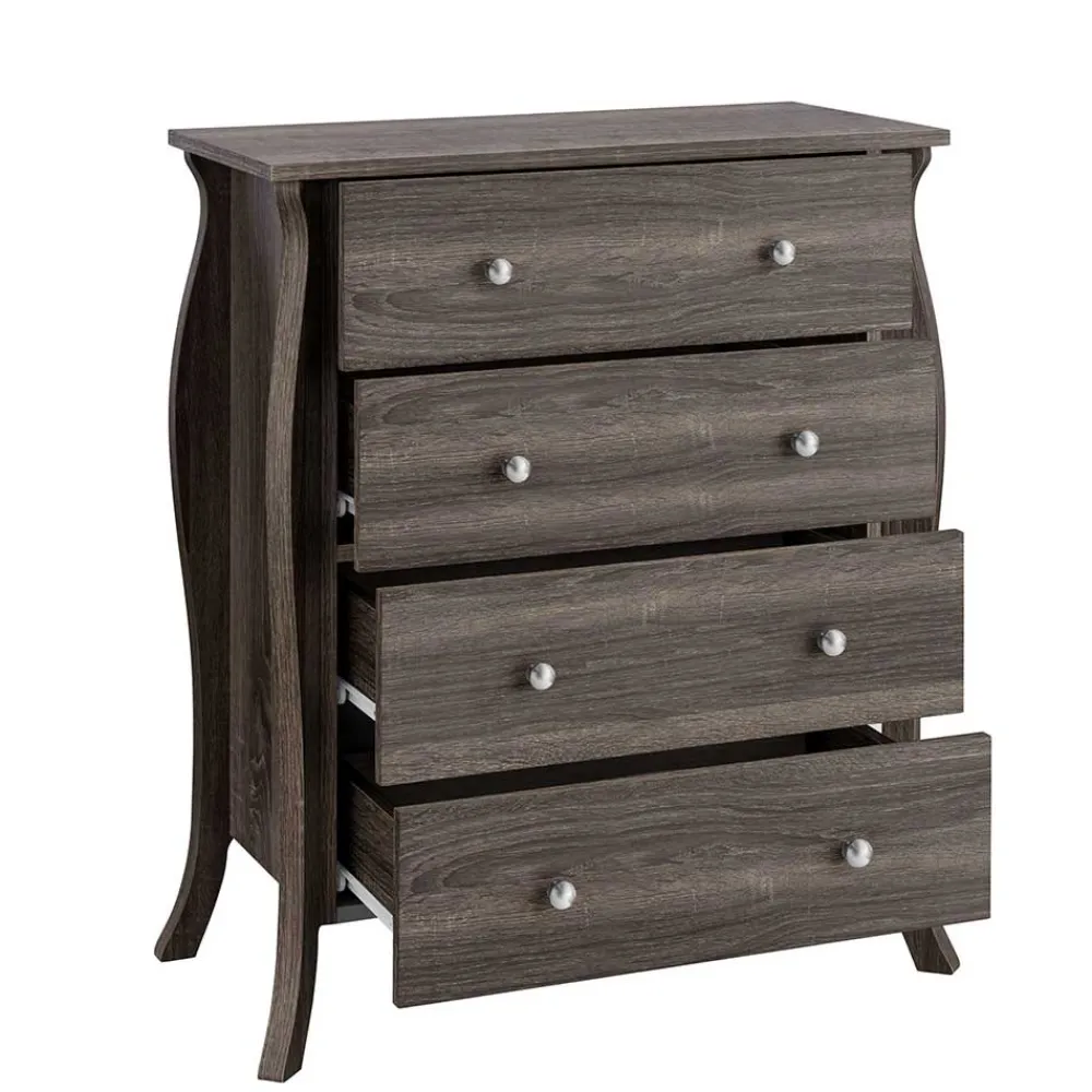 - Die geschwungenen Seiten stehen über und lassen das Möbel optisch größer wirken