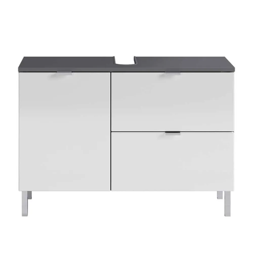 - Geräumiger Waschbeckenunterschrank in Weiß und Dunkelgrau