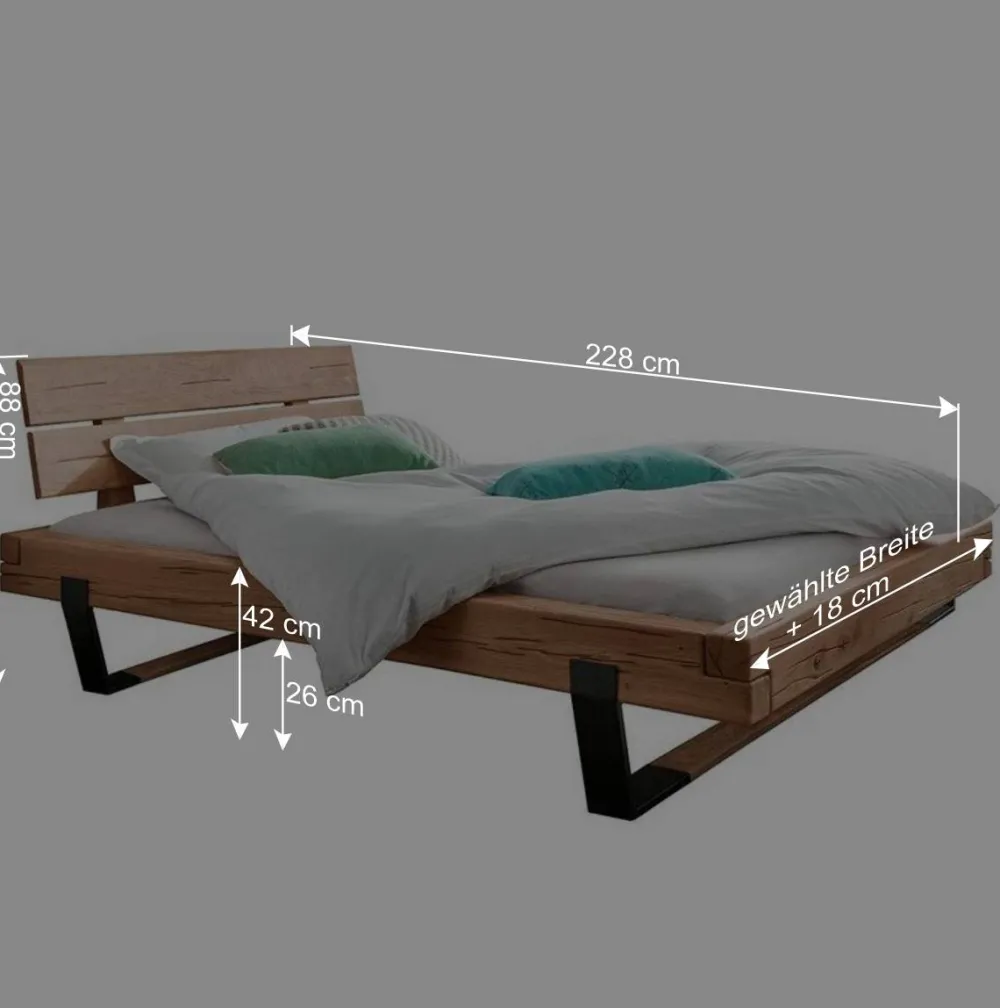 - Beeindruckendes Balkenbett in Wildeiche Naturfarben und Schwarz